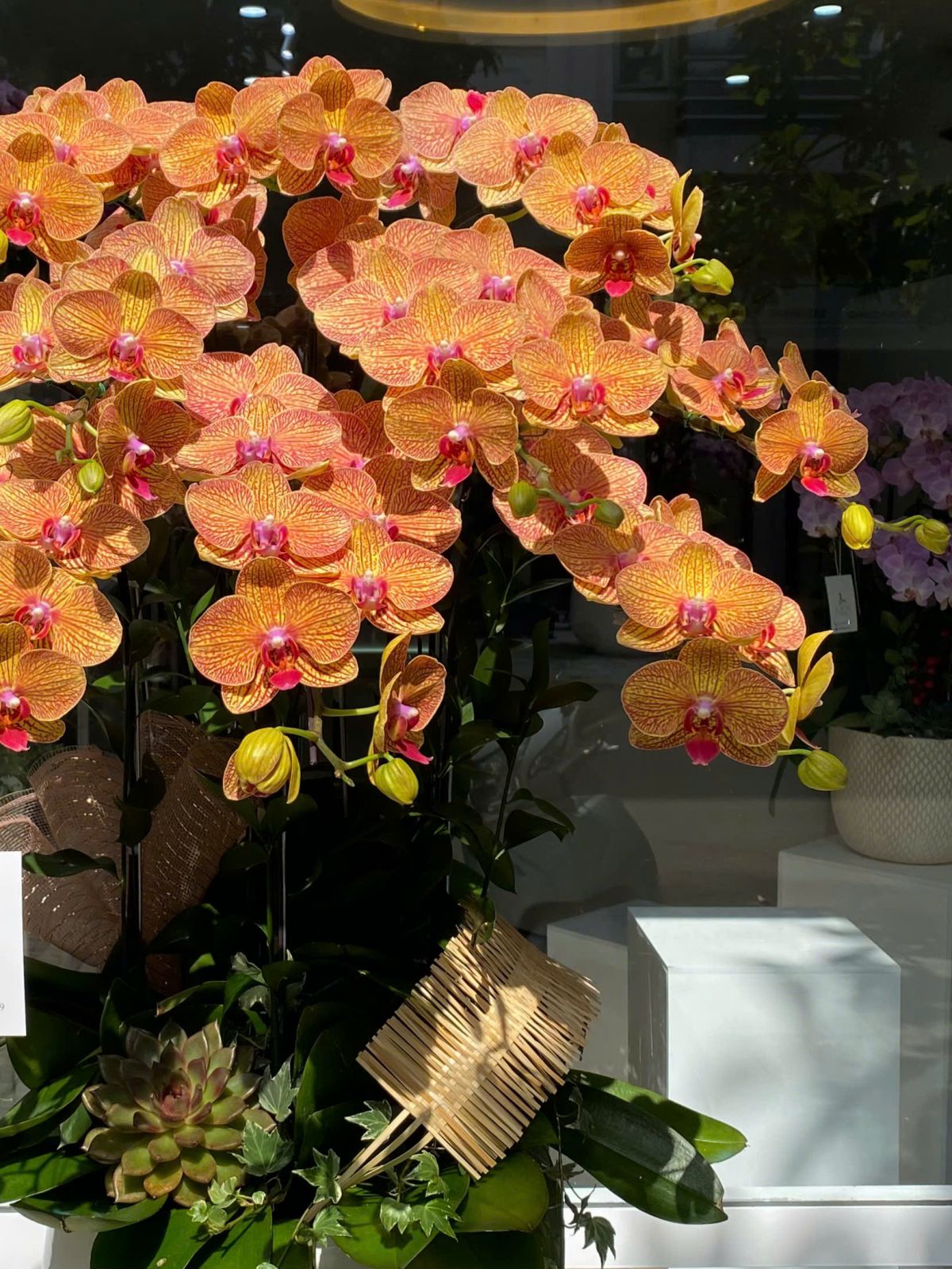 Chậu hoa lan hồ điệp cam mang đến cảm giác tươi tắn và đầy sức sống. Màu cam nổi bật trên chậu sứ giả đá màu xám gợi lên sự tự nhiên sống động nhưng vẫn giữ được sự trang nhã vốn có của lan hồ điệp. * Thông tin sản phẩm:
